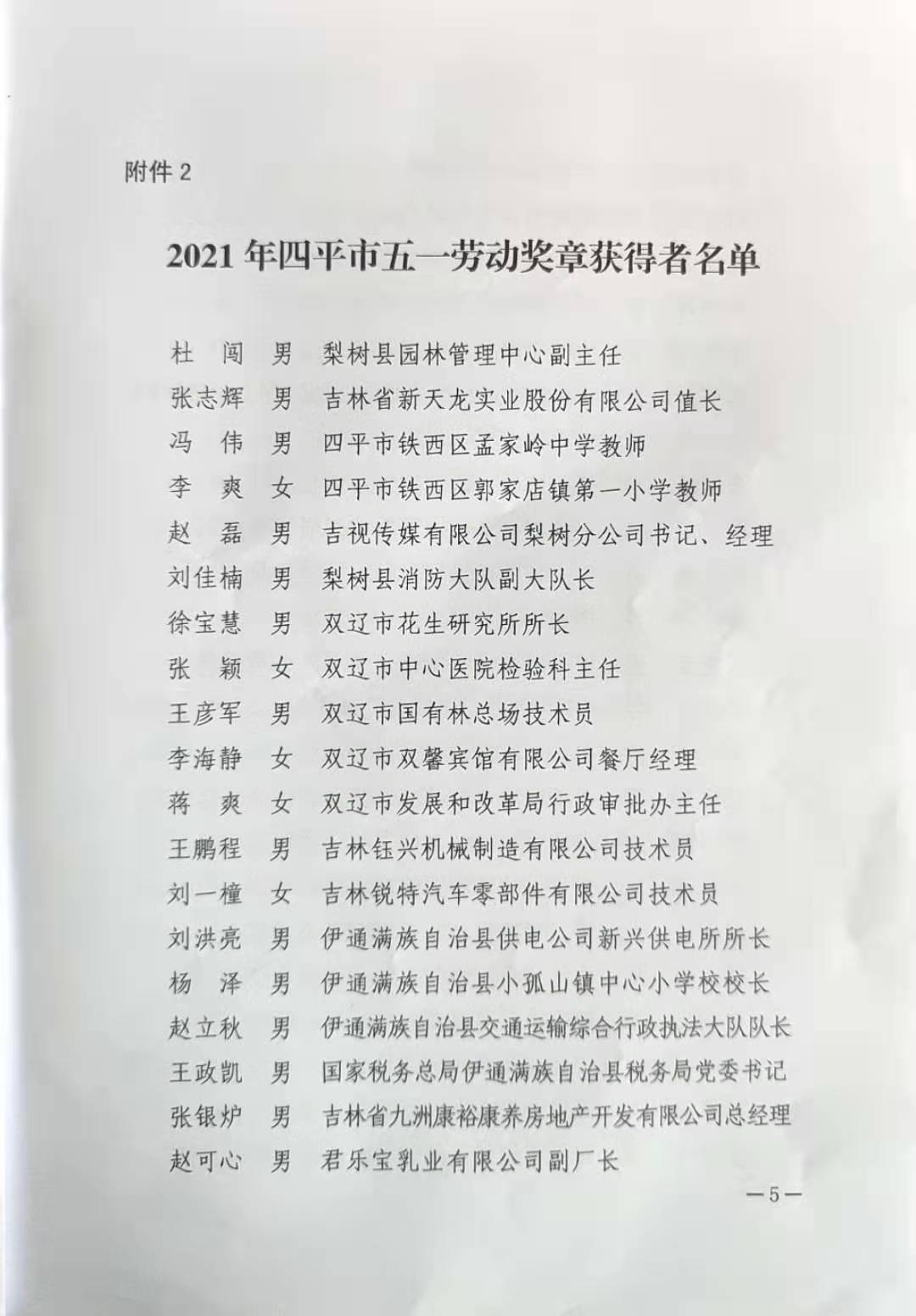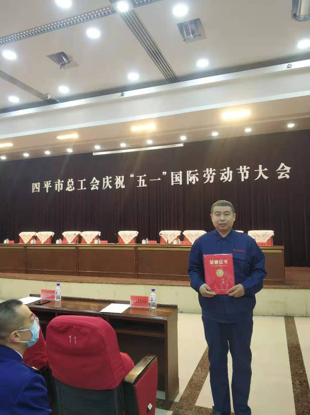 2021年4月27日,四平市總工會召開了慶祝“五一”國際勞動節大會,對2021年選樹的25個市“五一勞動獎狀”獲得單位、64名“五一勞動獎章”獲得者和19 個“工人先鋒號”獲得單位進行了表彰。我公司設備處檢修作業區焊鉗組組長劉軍同志被授予2021年四平市五一勞動獎章。